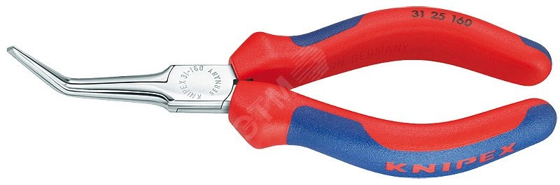 Длинногубцы плоские гладкие губки 55 мм под 45° L-160 мм хромированные двукомпонентные рукоятки