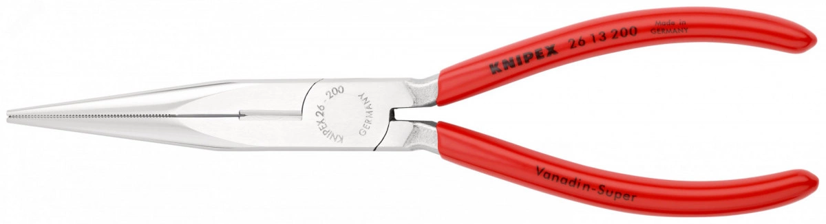 26 13 200 Длинногубцы с режущими кромками Упругие наконечники - стабильность формы даже при перекашивании. устойчивые к перекосу, упругие прецизионные наконечники. полукруглые,длинные и зауженные губки. с режущими кромками для мягкой, средней и жесткой проволоки. режущие кромки дополнительно закалены токами высокой частоты до твердости примерно 61 HRC. прямые губки. - Параметры резания/проволока средней твёрдости (диаметр) - 3,2mm - Параметры резания/ твёрдая проволока (диаметр) - 2,2mm - Толщина губки (шарнир) (T1) - 9,5mm - Ширина наконечников (W4) - 3,0mm - Tip Thickness (T2) - 2,5mm - Длина губок (L3) - 73,0mm - Ширина головки (W3) - 18mm