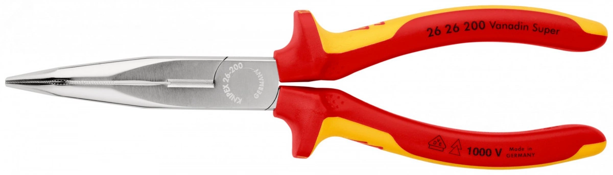 Длинногубцы с режущими кромками VDE 1000V полукруглые губки 40° рез: проволока средней твёрдости 32 мм твёрдая проволока 22 мм L-200 мм диэлектрические хромированные 2-компонентные рукоятки