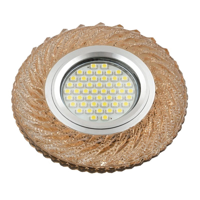 Полное описание: DLS-L137 GU5.3 GLASSY/TEA Светильник декоративный встраиваемый, серия Luciole. Без лампы, цоколь GU5.3. Доп. светодиодная подсветка 3Вт. Стекло. Зеркальный/светло-коричневый. ТМ Fametto