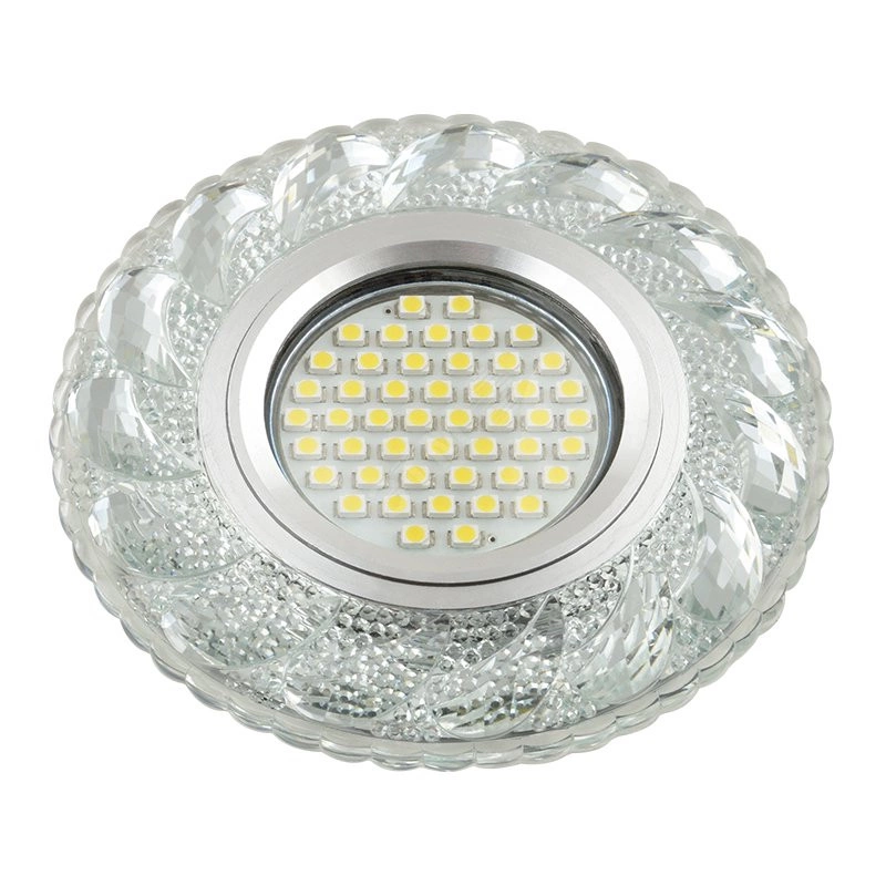 Полное описание: DLS-L147 GU5.3 GLASSY/CLEAR Светильник декоративный встраиваемый, серия Luciole. Без лампы, цоколь GU5.3. Доп. светодиодная подсветка 3Вт. Стекло. Зеркальный/прозрачный. ТМ Fametto