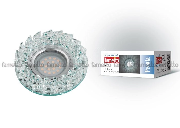 Полное описание: DLS-P108 GU5.3 CHROME/CLEAR Светильник декоративный встраиваемый ТМ ''Fametto'', серия ''Peonia''. Без лампы, цоколь GU5.3. Основание металл, цвет хром. Отделка стекло, цвет прозрачный