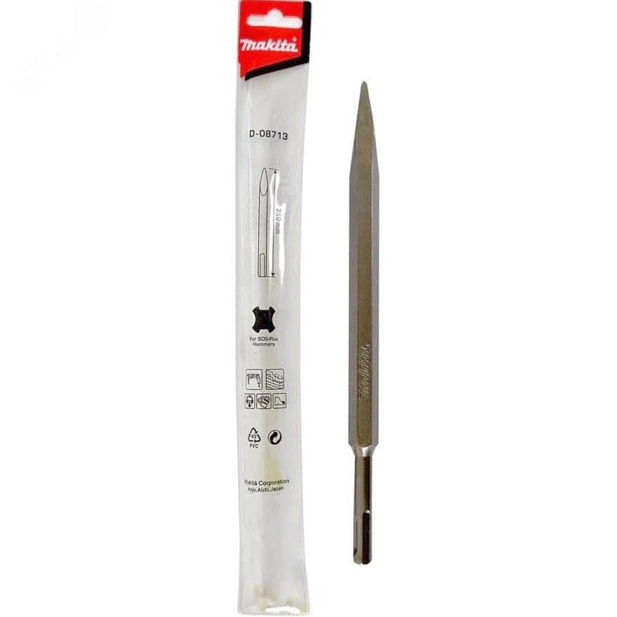 Долото подходит для всех перфораторов с посадкой SDS-Plus. Данный стандарт крайне распространен, он поддерживается многими перфораторами. За счет этого обеспечивается широкая совместимость с оборудованием. Острый кончик способствует значительному давлению и быстрой работе. Установка оснастки займет минимум времени, она надежно фиксируется в технике. Применяется долото для долбления материалов. Оно имеет форму пики, за счет чего увеличивается эффективность при нанесении ударов. Можно долбить асфальт, бетонные и кирпичные стены, последующее применение зависит от ваших потребностей.