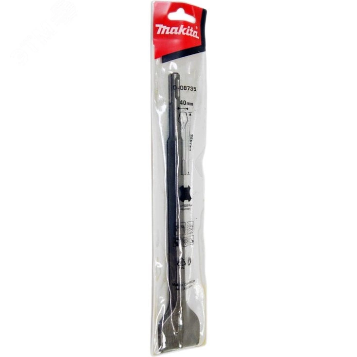Плоское широкое долото Makita D-08735 с большим ресурсом и с увеличенной скоростью образования канавки. Применяется при снятии бетона, штукатурки и прочих слоистых старых материалов. Общая длина 250 мм, длина режущей кромки 40 мм. Долото имеет плоскую форму и отличается простотой в использовании, этот факт сказывается на выполнении последующих работ. Долото получило хвостовик SDS+, за счет чего обеспечивается его совместимость с различными перфораторами.