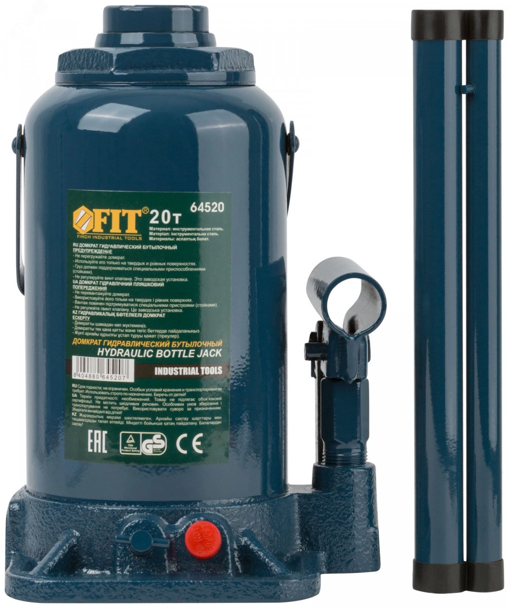 Домкрат гидравлический бутылочный FIT IT предназначен для подъема грузов. Компактный размер и высокая грузоподъемность позволяют использовать домкрат для различных задач. Благодаря большой площади опоры бутылочный домкрат отличается устойчивостью и безопасностью при эксплуатации. Устройство может работать при низких температурах.