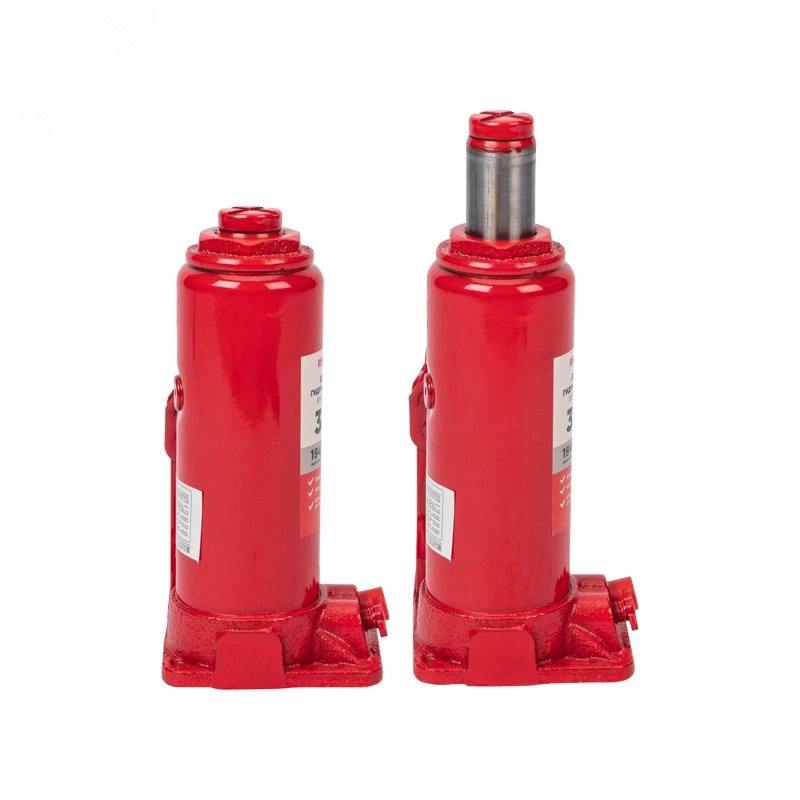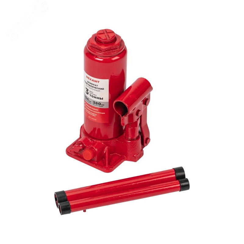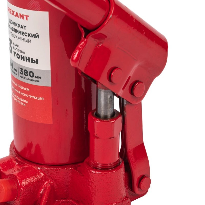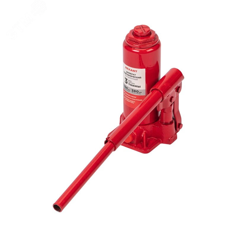 Гидравлический бутылочный домкрат 3 т Rexant поднимает грузы массой до 3 тонн на высоту до 372 мм. Оптимален для автомобилей с большим клиренсом. Будет полезен автолюбителям при проведении технического обслуживания и ремонта. Отличается плавностью хода, надежностью и жесткостью конструкции. Клапан безопасности не дает поднимать груз тяжелее 3 т, предохраняя домкрат от поломки. Максимальная нагрузка - 3 т. Высота подхвата - 194 мм. Высота подъема - 380 мм. Материал корпуса - сталь, чугун.