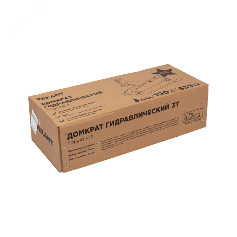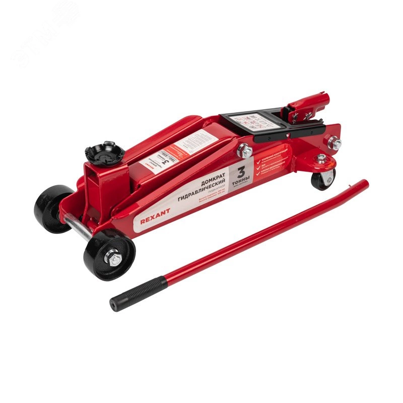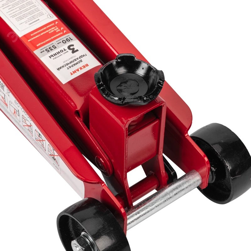 Домкрат гидравлический подкатной 3 т Rexant, с высоким подъемом - представляет собой устройство с гидравлическим механизмом, предназначенное для поднятия автомобиля на заданную высоту. Отличается плавностью хода, надежностью и жесткостью конструкции. За счет высокого подхвата используется для автомобилей с увеличенным дорожным просветом. Данный вид домкрата подходит для самостоятельного обслуживания автомобиля. Клапан безопасности не дает поднимать груз тяжелее 3 т, предохраняя домкрат от поломки.