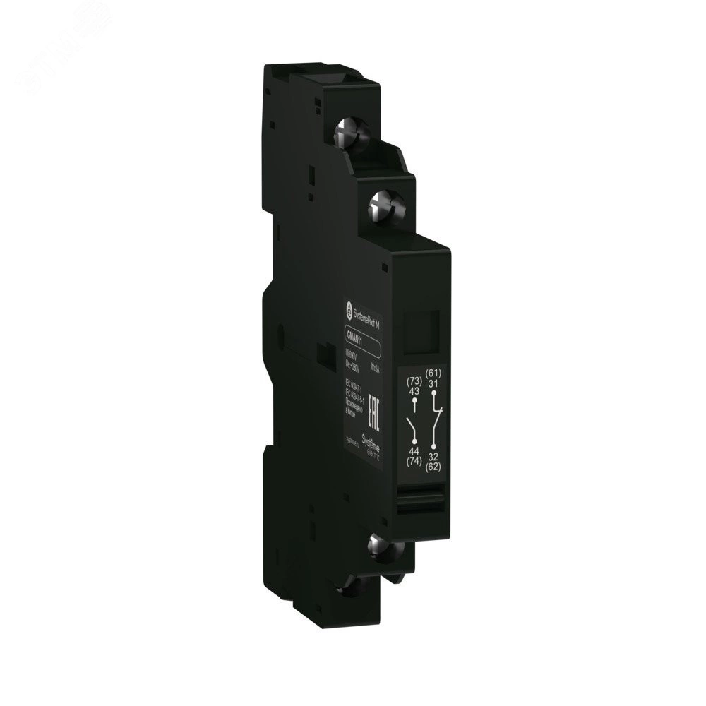 Дополнительный блок контактов для автоматических выключателей серии SystemePact GM2, исполнение - 1НО+1НЗ, монтаж – боковой. Блоки дополнительных контактов применяются совместно с автоматическими выключателями и предназначены для увеличения количества вспомогательных контактов, использующихся в цепях сигнализации и управления.