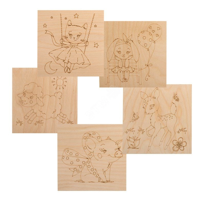 Выжигание по дереву — прекрасное хобби как для ребенка, так и для взрослого. Доски для выжигания по дереву изготовлены из качественной шлифованной фанеры и относятся к эко-игрушкам, обладают всеми сопутствующем достоинствами - естественный цвет и запах положительно влияют на психику, фактура, текстура и плотность дерева передают тактильные ощущения и играют важную роль в познании мира, дают ребенку реальные представления о вещах и материалах, натуральные материалы развивают вкус и эстетические качества. На доски нанесены разные рисунки с разным уровнем сложности. У детей развивается мелкая моторика пальцев, внимательность, усидчивость и аккуратность. У ребенка формируются навыки рисования и фантазия, основы работы с выжигателем. Состав набора ''Малыши зверята'' - 5 досок для выжигания — сюжеты со зверятами (поросенок, олененок, котенок, зайка, барашек).