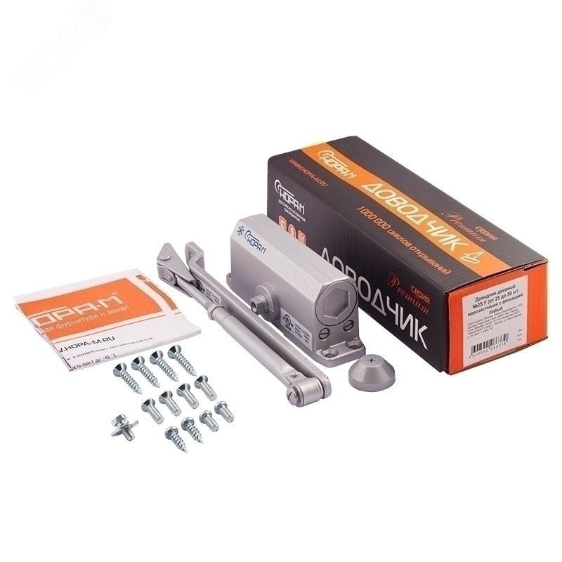 Модель 2S–F представляет собой устойчивый к морозам дверной доводчик. Модель предназначена для установки на лёгкие двери, вес которых составляет от 25 до 50 кг - пластиковые и деревянные. Доводчик оснащён функцией фиксации двери открытой. Он создан специально для больниц, школ, детских садов, где есть необходимость регулярно проветривать помещение или проносить через двери крупногабаритные предметы. Угол открытия двери зависит от установки доводчика. Если корпус доводчика установлен на дверное полотно, то угол открытия зависит от места установки относительно петель - чем дальше доводчик от петель, тем меньше угол открытия.