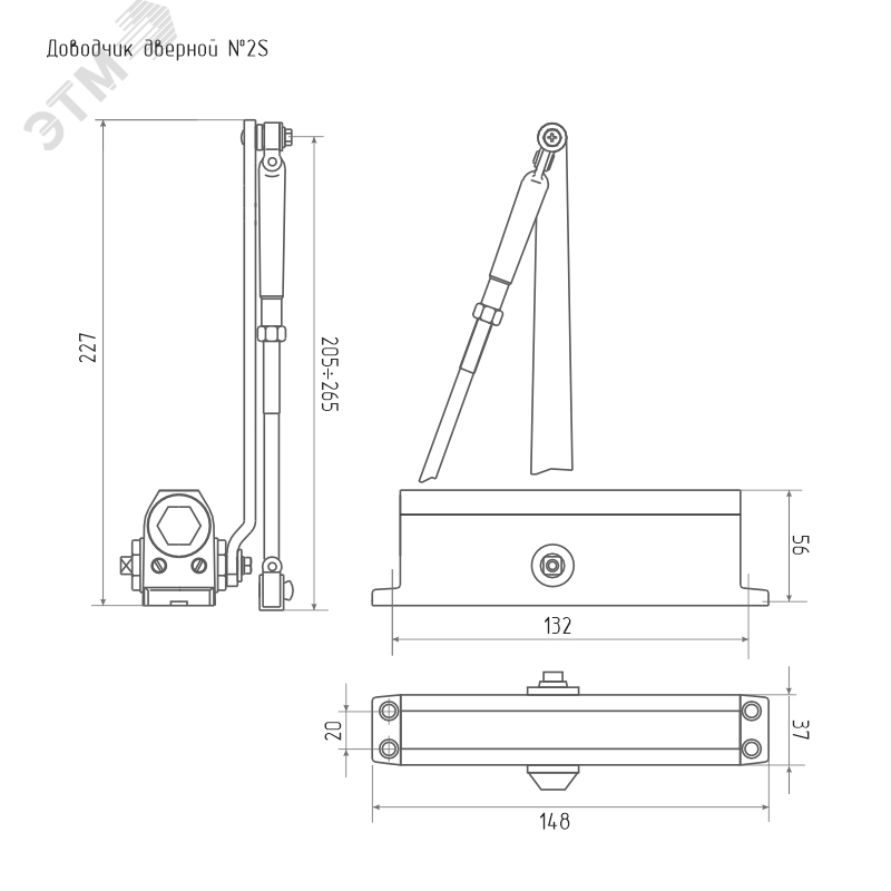 Модель доводчика 2S предназначена для дверей и калиток весом от 25 до 50 кг. Сохранить максимальную продуктивность при небольших размерах позволяет двойная пружина с повышенной плотностью сжатия. Специальное гидравлическое масло обеспечивает работоспособность механизма в различных температурных условиях, от –45 до +60 градусовС. Устройство имеет регулировку скорости закрытия и довода полотна. Угол открытия двери зависит от установки доводчика. Если корпус доводчика установлен на дверное полотно, то угол открытия зависит от места установки относительно петель - чем дальше доводчик от петель, тем меньше угол открытия.