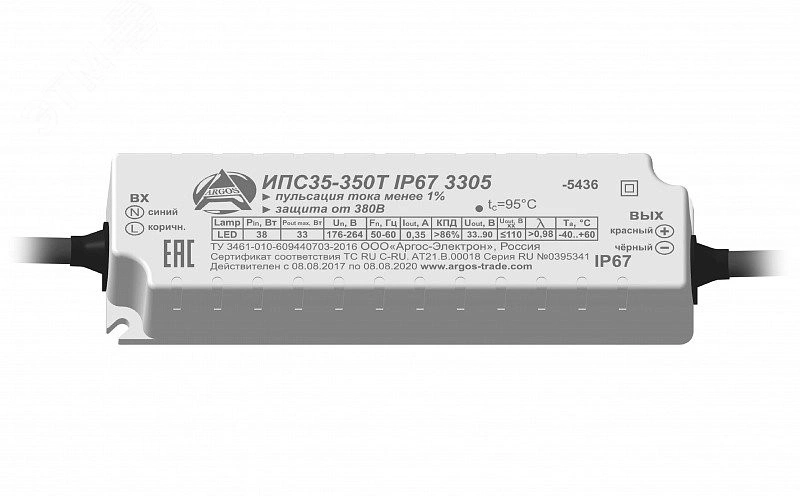 Драйвер светодиодный ИПС35-350Т IP67 3305