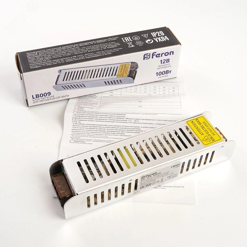LB009 - это электронный трансформатор, предназначенный для питания светодиодных лент. Он обладает мощностью 100 Вт и работает на напряжении 12 В. Его компактные размеры позволяют удобно разместить его внутри светового оборудования. Трансформатор LB009 обладает защитой класса IP20, он отлично подходит для использования внутри помещений и не рекомендуется использовать его в условиях высокой влажности или внешней среды. Этот электронный трансформатор обеспечивает стабильное и безопасное питание для светодиодной ленты. Он оснащен драйвером, который контролирует поставляемый ток и напряжение, защищая светодиодные ленты от перегрева и повреждений.