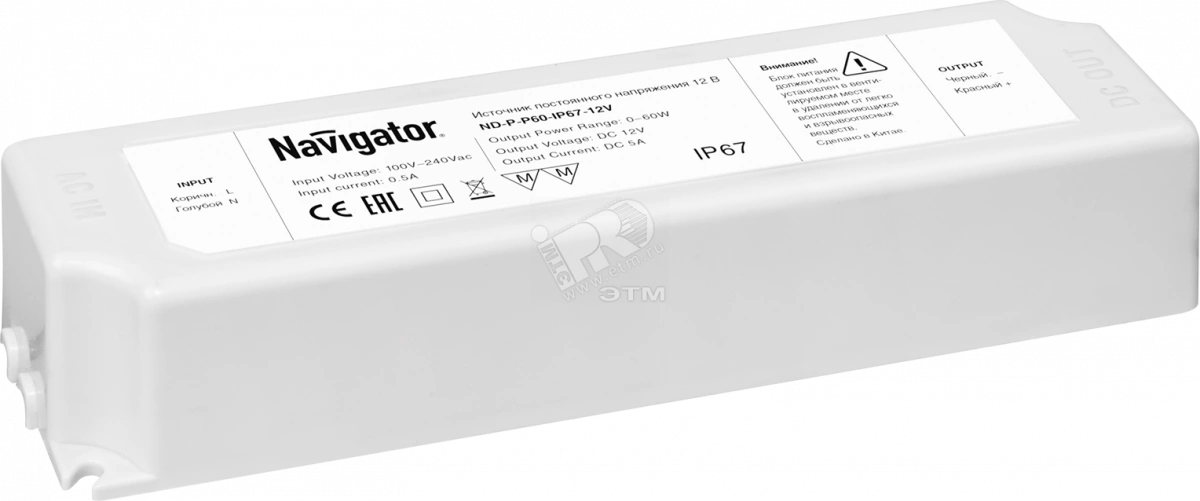 Полное описание: Драйвер светодиодный LED 60w IP67 12v