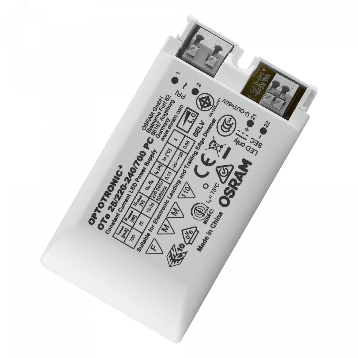 Драйвер OTE 25/220-240/700 PC UNV1 OSRAM. Совместим с самыми распространенными фазовыми регуляторами силы света по переднему и заднему фронту.
