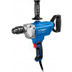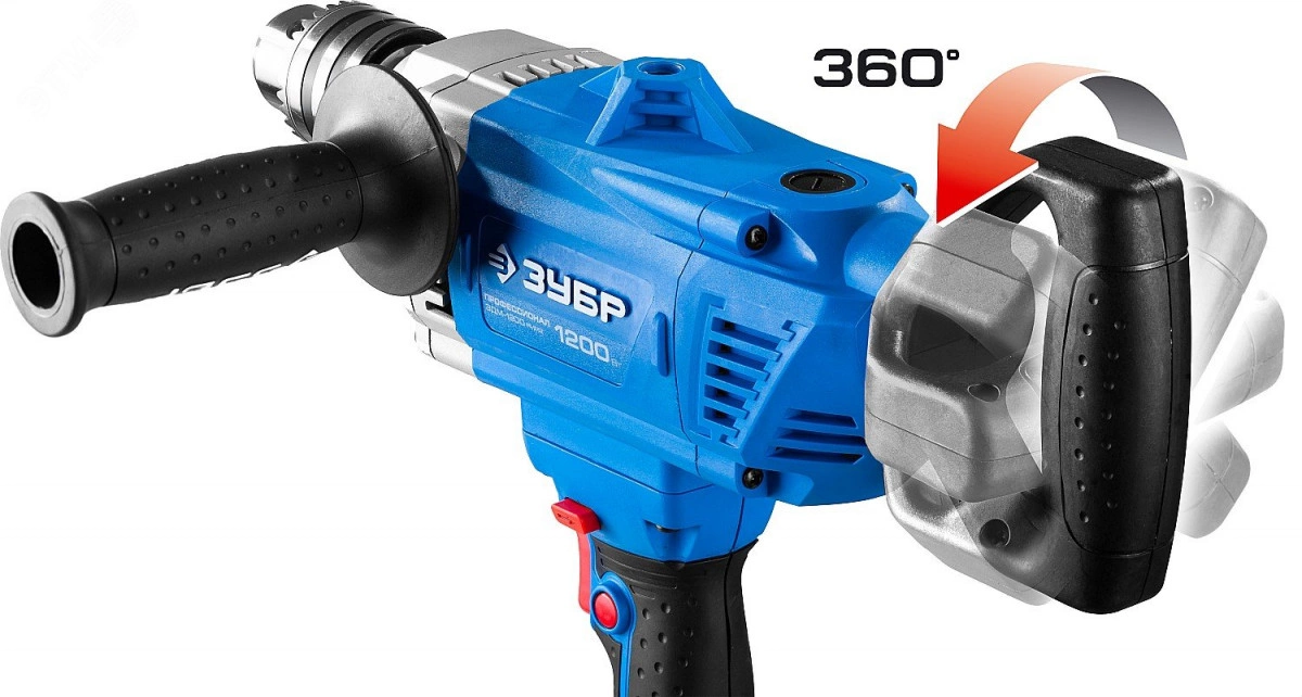 Многоцелевая дрельмиксер идеально подходит для сверления отверстий большого диаметра и размешивания различных растворов, краски и бетона. Высокий крутящий момент позволяет сверлить глубокие отверстия большого диаметра, например, сверлом Левиса и размешивать различные ЛКМ и даже бетон. Электронная регулировка частоты вращения позволяет начать размешивание без разбрызгивания и производить точное сверление отверстий. Реверсирование вращения помогает как извлекать сверла из глубоких отверстий, так и менять направление перемешивания простым переключением рычажка. Металлический корпус редуктора обеспечивает повышенную прочность узла и лучшее охлаждение редуктора в условиях повышенных нагрузок. Усиленная основная рукоятка с удобным держателем ключа патрона.