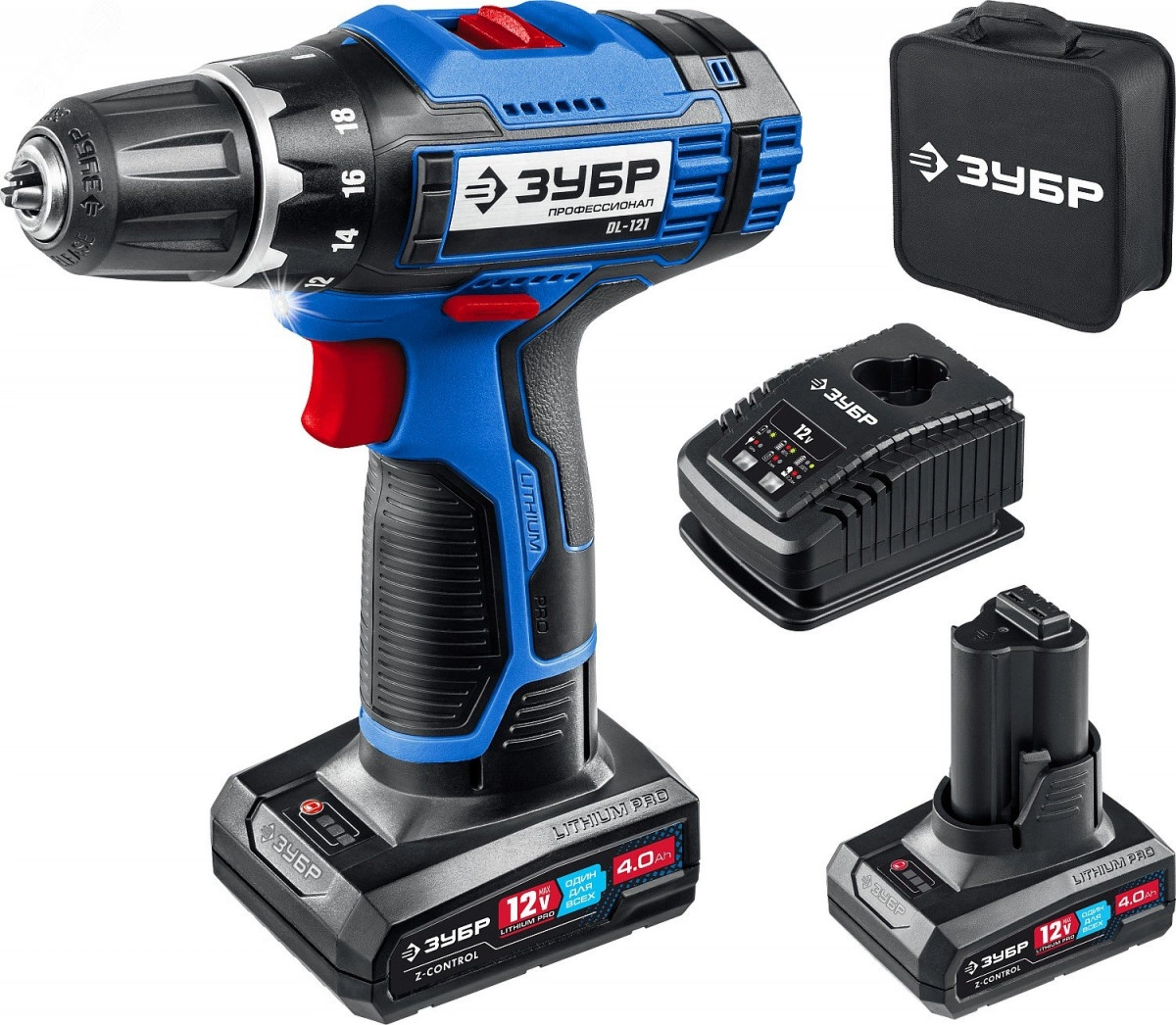 Дрель-шуруповерт 12В, 2 АКБ (4Ач), в сумке, Профессионал.
