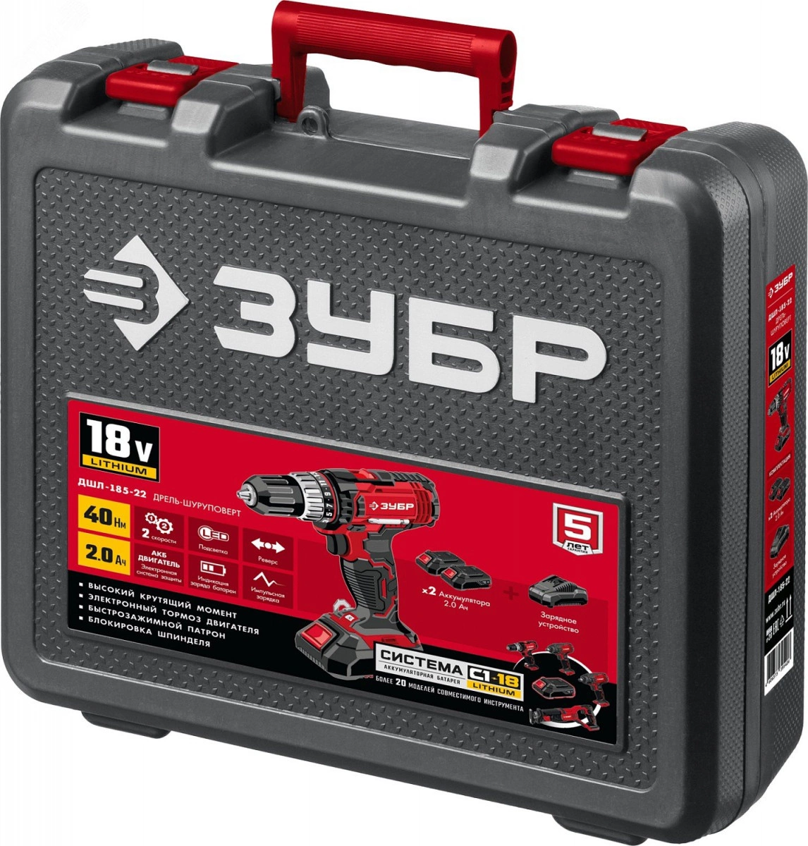 Инструмент увеличенной мощности с отличной эргономикой. Компактный аккумуляторный шуруповерт с удобной эргономикой для комфортной работы. Высокий крутящий момент при широком диапазоне оборотов благодаря конструкции редуктора. Литийионная технология ЗУБР нового поколения - увеличение производительности на 35%. электронная система защиты от перегрузки, перегрева и глубокой разрядки. Отсутствие эффекта памяти. Отсутствие потери мощности в процессе работы. Бесключевой одномуфтовый патрон для максимальной простоты и скорости замены расходного инструмента. Дополнительный аккумулятор в комплекте обеспечивает непрерывную работу благодаря мгновенной замене разряженной батареи. Двухскоростной планетарный редуктор позволяет как заворачивать с большим крутящим моментом, так и сверлить на высоких оборотах.