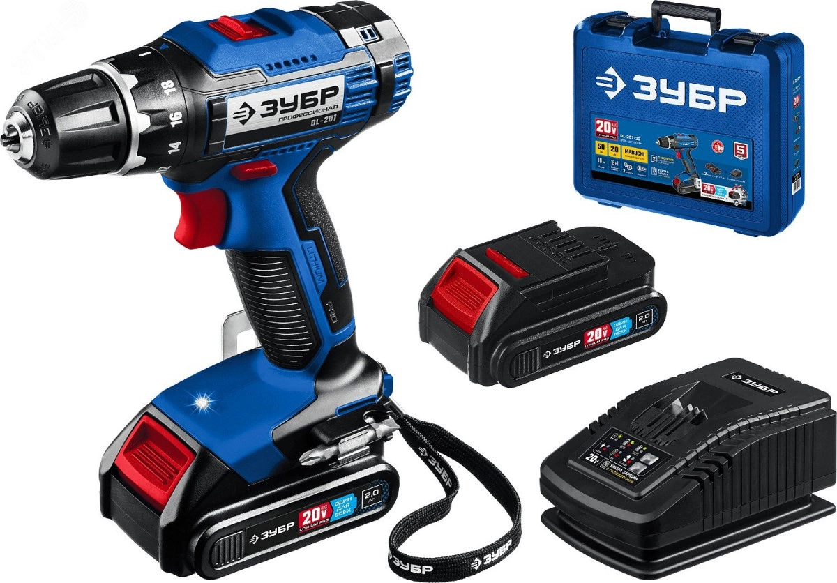 Дрель-шуруповерт 20В, 2 АКБ (2Ач), в кейсе, Профессионал