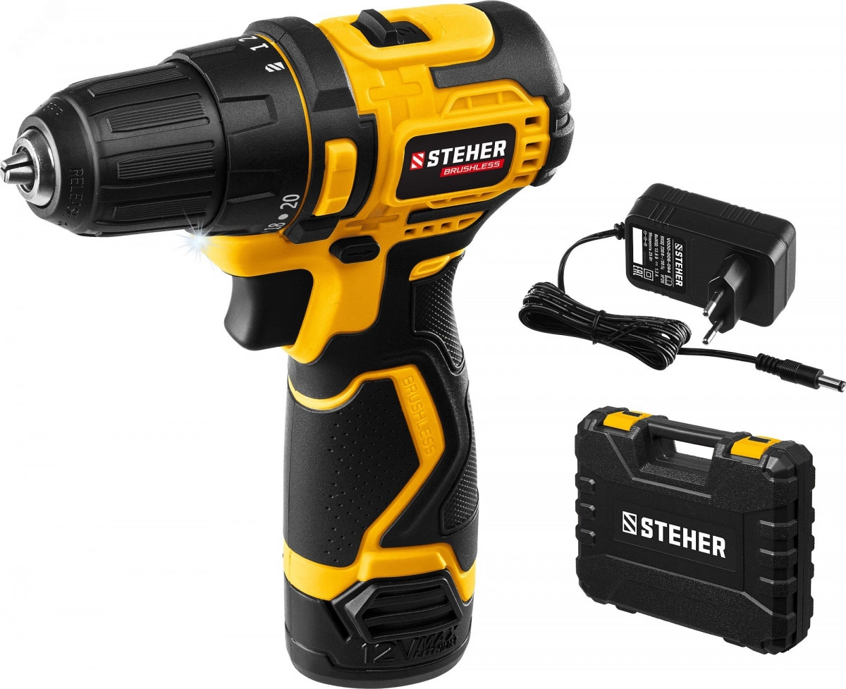 Дрель-шуруповерт бесщеточная 12 В, 35 Нм, 1 АКБ (2 Ач), кейс