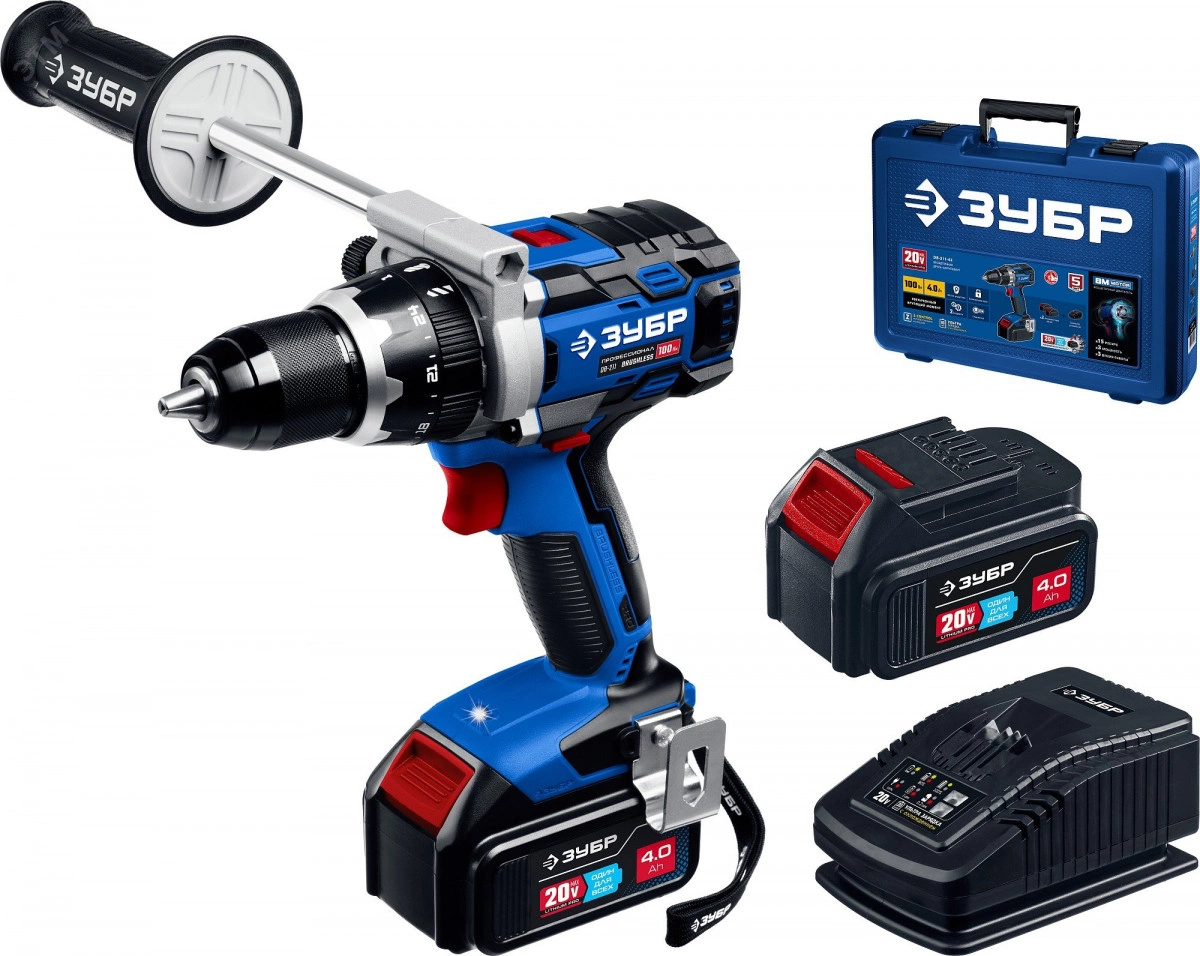 Дрель-шуруповерт бесщеточная 20 В, 2 АКБ (4 Ач) кейс, Профессионал