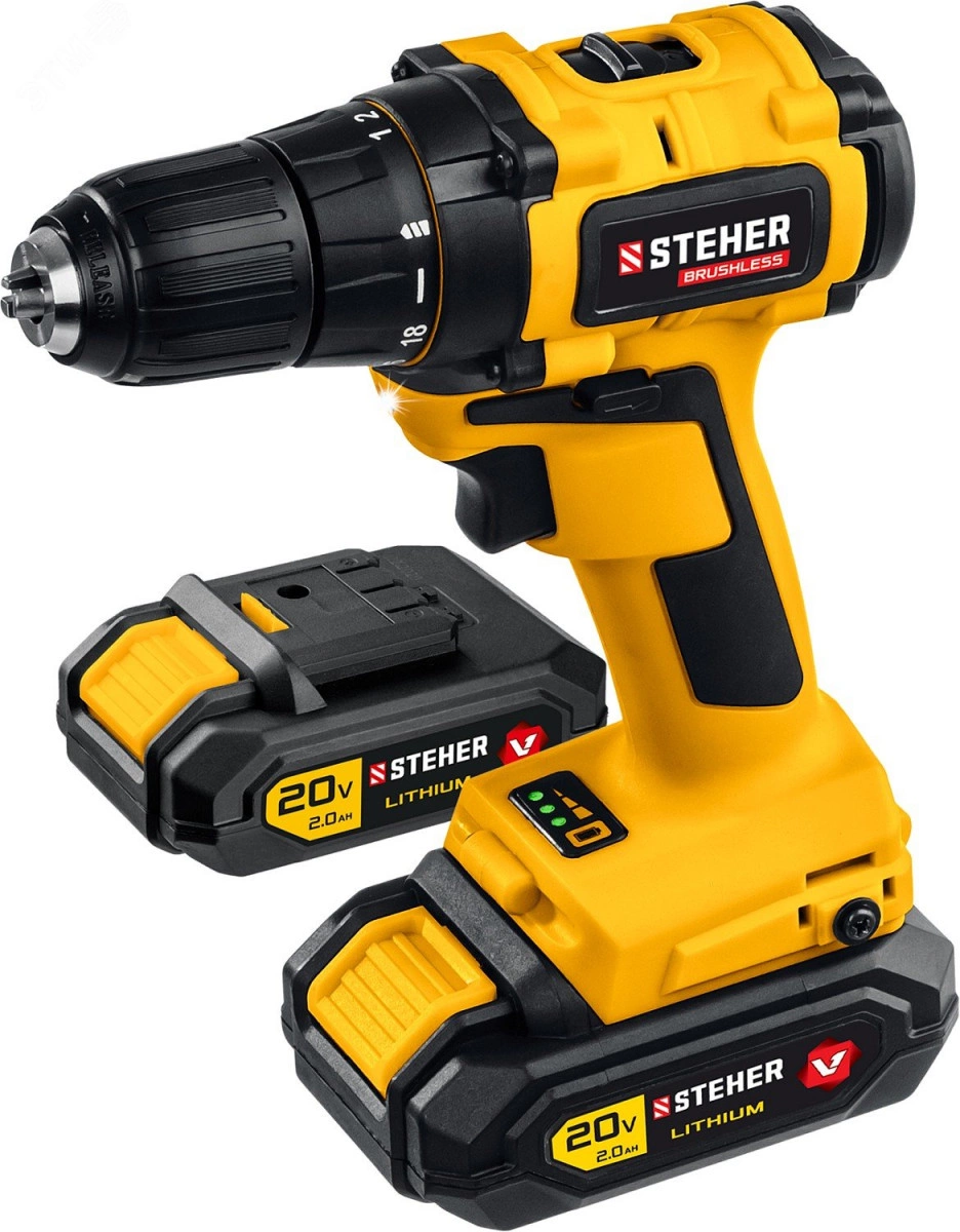 Дрель-шуруповерт бесщеточная 20 В, 45 Нм, 2 АКБ (2 Ач), кейс