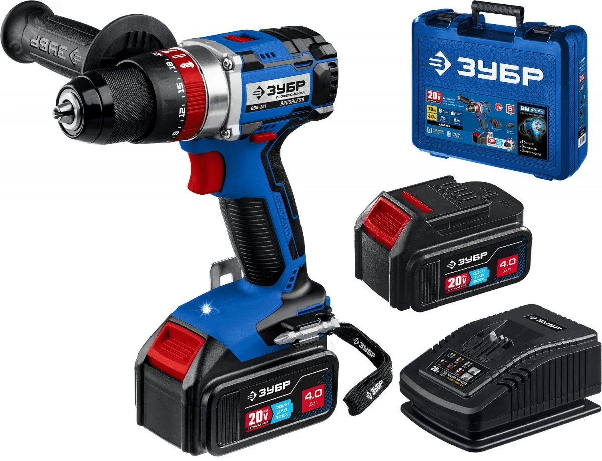 Дрель-шуруповерт ударная 20В бесщеточная, 2 АКБ (4Ач), в кейсе, Профессионал