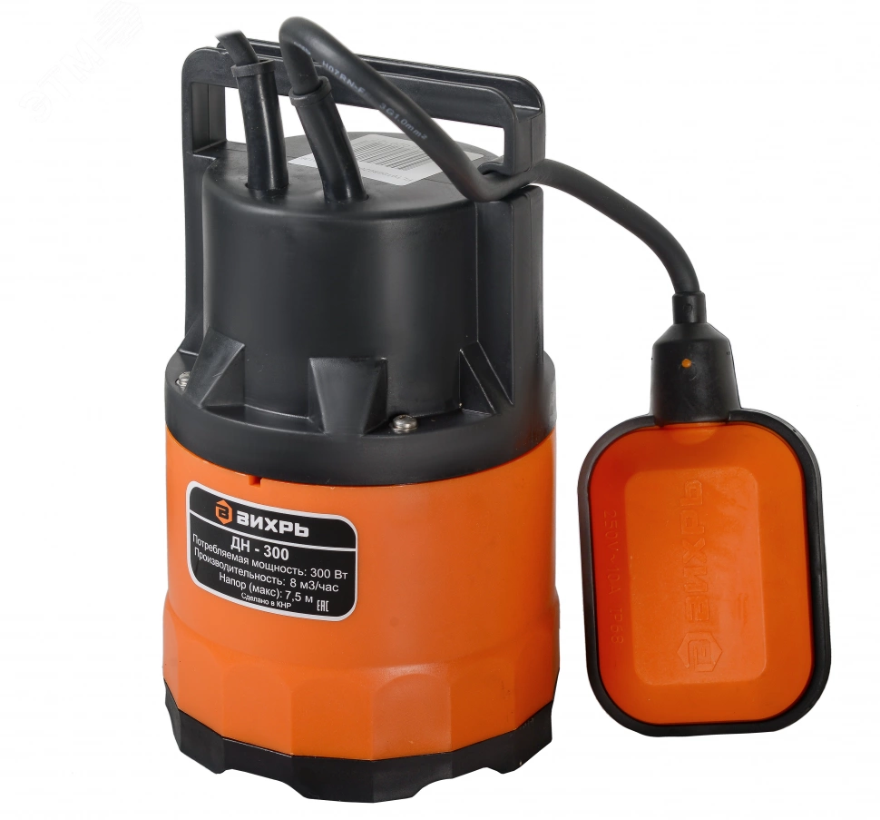 Дренажный насос Вихрь ДН-300 68/2/6 отличается высокой производительностью. Имеет ударопрочный корпус. Оснащен поплавковым механизмом для исключения поломки и автоматического включения/выключения. Перекачивает чистую и слабозагрязненную воду с частицами размером до 5 мм.