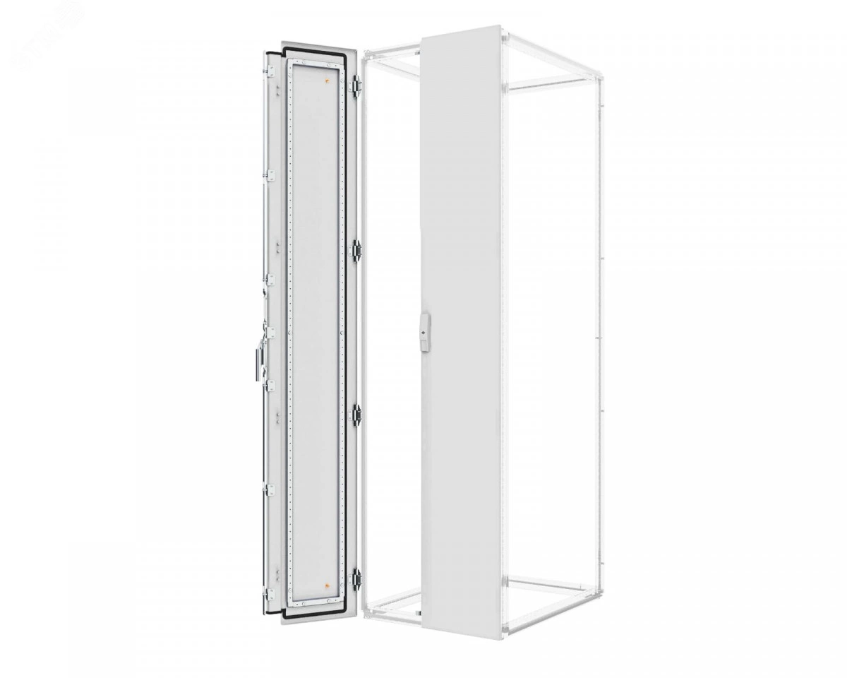 Двери глухие двухстворчатые предназначены для установки в рамы напольных линейных шкафов RS52 шириной 600-1200 мм включительно. Крепятся к вертикальным стойкам рамы при помощи петель. Установка фронтальная. Грузоподъемность двери не более 70 кг. Скрытые петли, с углом открытия 160°, запорный механизм с вытяжной ручкой
