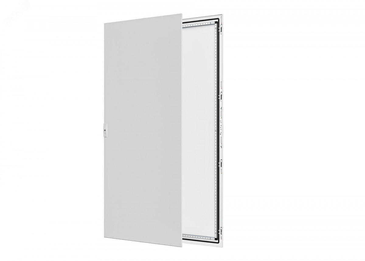 Дверь глухая одностворчатая предназначена для установки в рамы напольных линейных шкафов RS52 шириной до 800 мм включительно. Крепится к вертикальным стойкам рамы при помощи петель. Установка фронтальная. Дверь наружные петли, с углом открытия 180 градусов.