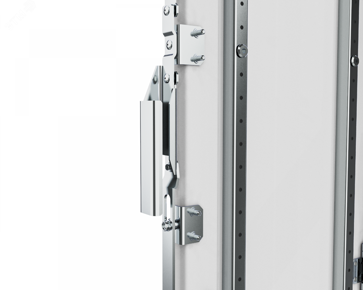 Дверь перфорированная двухстворчатая предназначена для установки в рамы напольных линейных шкафов RS52 шириной 600-1000 мм включительно. Крепится к вертикальным стойкам рамы при помощи петель. Установка фронтальная. Дверь скрытые петли, с углом открытия 160 градусов, запорный механизм с вытяжной ручкой.