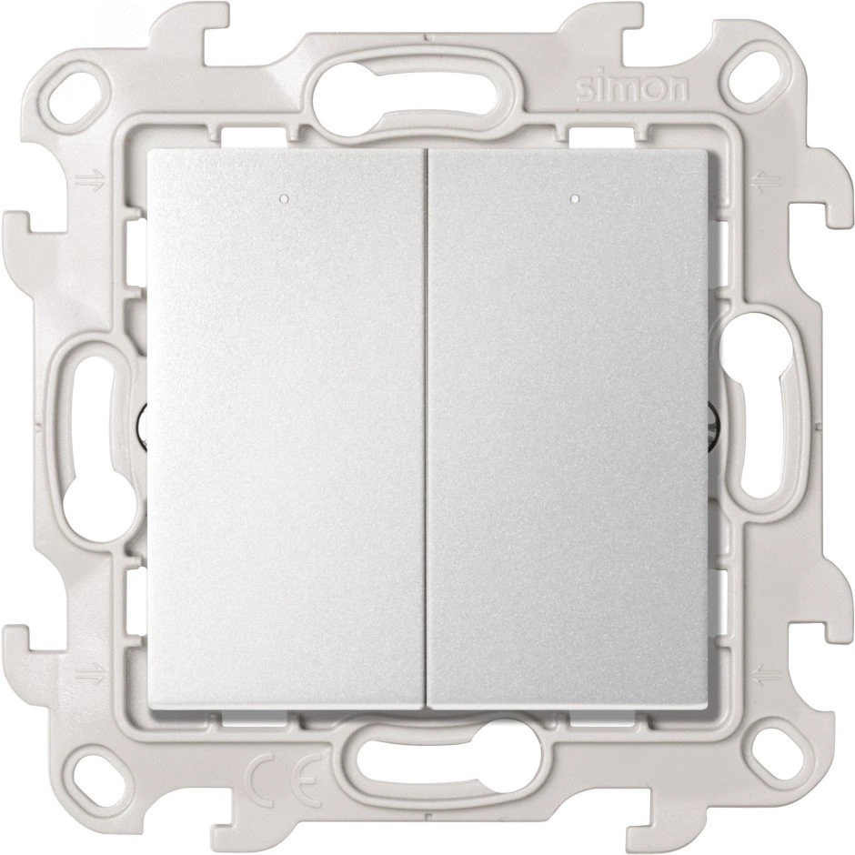 Двухклавишный выключатель с подсветкой 10AX 250В~ цвета алюминий S24 Harmonie