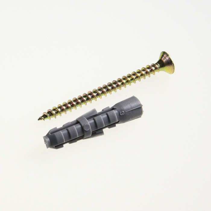 Дюбель 8х40 распорный без борта полипропилен серый с шурупом 5х60 цинк (уп.6шт) пакет EKT 1128021