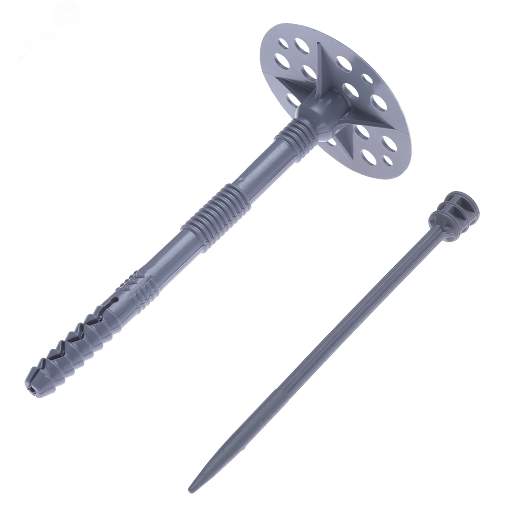 Специализированный крепеж для теплоизоляции, осуществляющий механическую фиксацию теплоизоляционных материалов к твердому основанию.