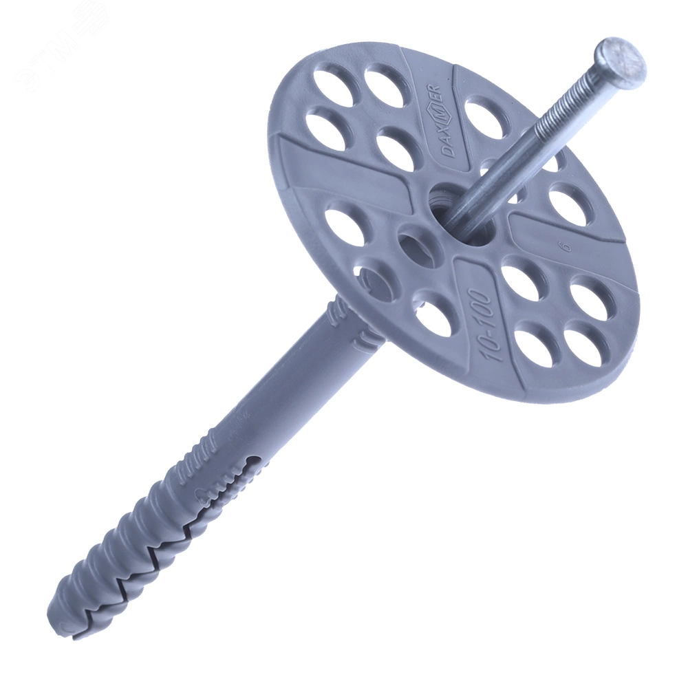 Специализированный крепеж для теплоизоляции, осуществляющий механическую фиксацию теплоизоляционных материалов к твердому основанию.