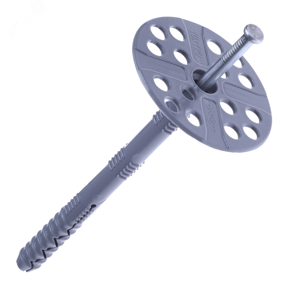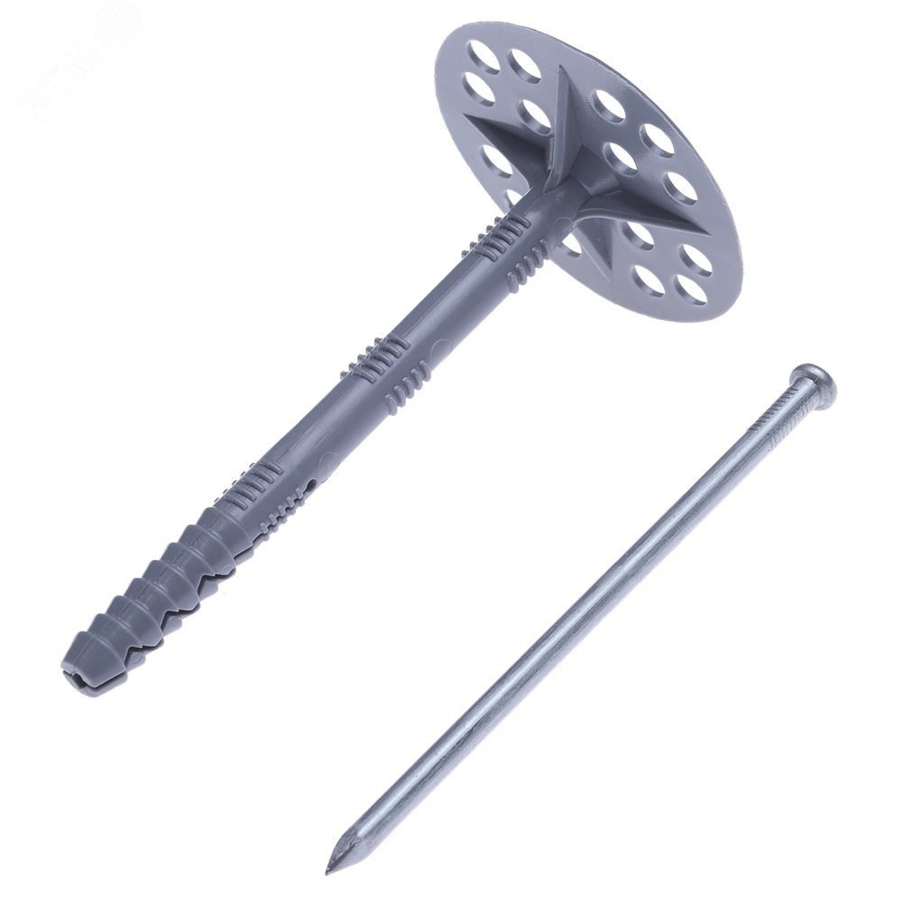 Специализированный крепеж для теплоизоляции, осуществляющий механическую фиксацию теплоизоляционных материалов к твердому основанию.