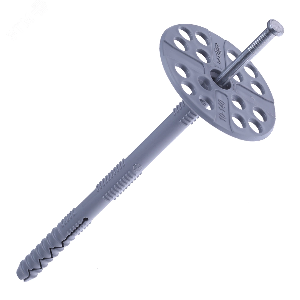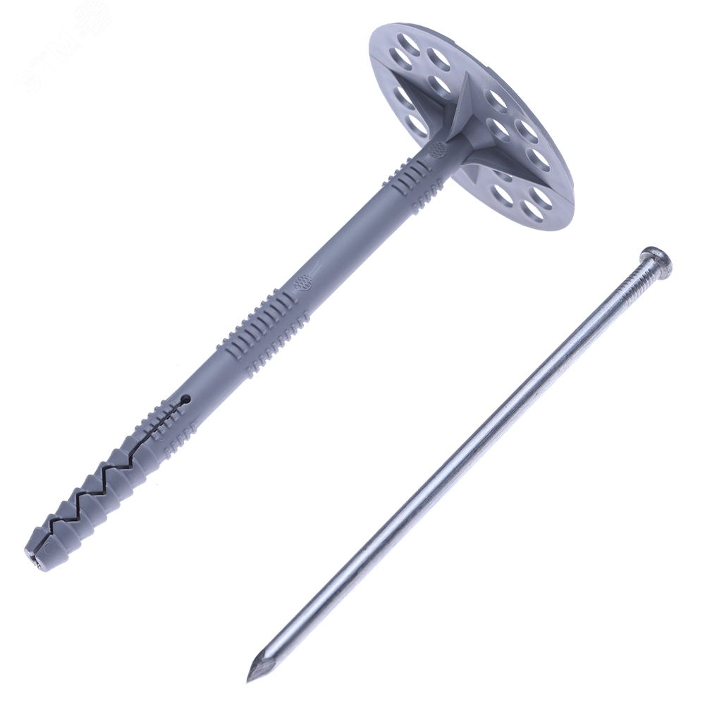 Специализированный крепеж для теплоизоляции, осуществляющий механическую фиксацию теплоизоляционных материалов к твердому основанию.