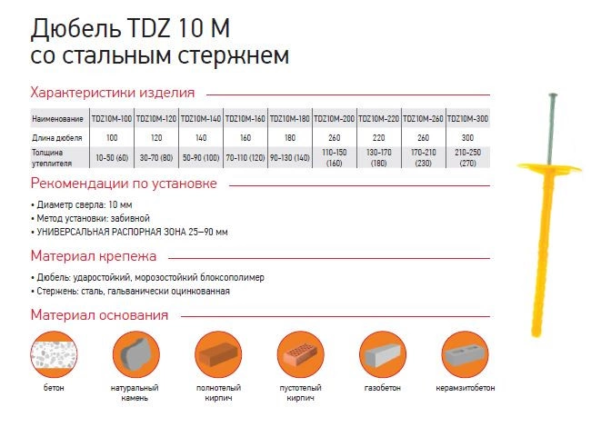 Дюбель для теплоизоляции 10х160 термоголовка (50шт)