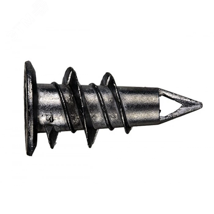 Дюбель DRIVA имеет плоскую головку с крестообразным шлицем PH, самонарезающую резьбу с крупным шагом и наконечник в виде бура. Изготовлен из цинк-алюминиевого сплава.