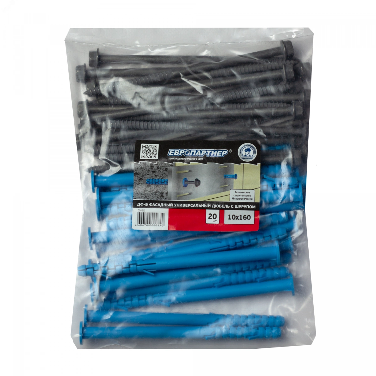 Фасадное крепление ДФ Б состоит из нейлонового дюбеля и шурупа из углеродистой стали с низкотемпературной антикоррозийной обработкой методом термодиффузии с цинком по технологии ''Термишин''. Усиленная конструкция специального шурупа предотвращает возможность поломки в процессе установки и гарантирует высокие нагрузки. Дюбель изготовлен из нейлона нового поколения с уменьшенным влагопоглощением. Фасадный дюбель используется для сквозного крепления к фасадам из разных материалов — кирпича, камня, бетона, газо и пенобетона, керамзитобетона. Применяется при фиксации элементов фасадных конструкций, рам и планок к стенам.