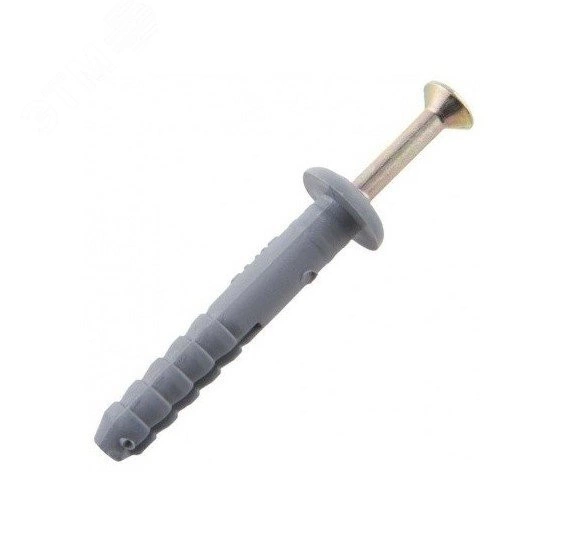 Дюбель имеет ограничительный бортик, который при забивании дюбель-гвоздя не позволяет ему проваливаться в отверстие. Бортик может быть разных форм: потайной, округлый или цилиндрический. Монтаж производится в предварительно просверленное отверстие ударным способом при помощи молотка.