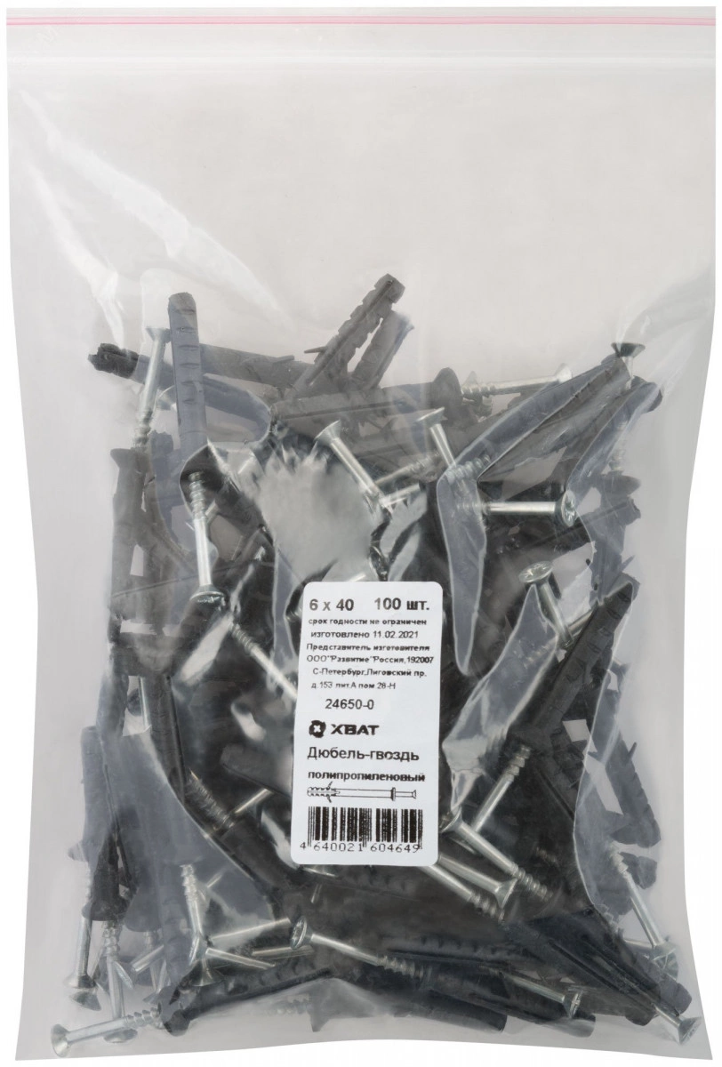 Дюбель-гвоздь 6х40 потайной бортик, полипропилен (100шт)