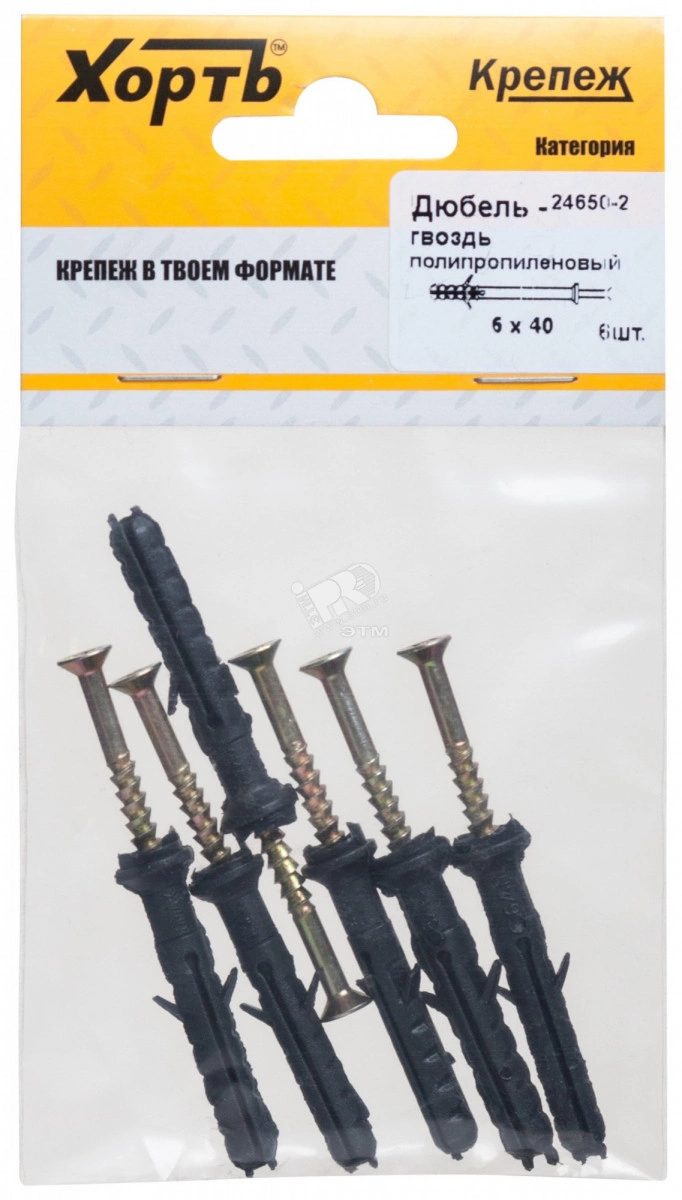 Дюбель-гвоздь 6х40 потайной бортик, полипропилен (6шт)