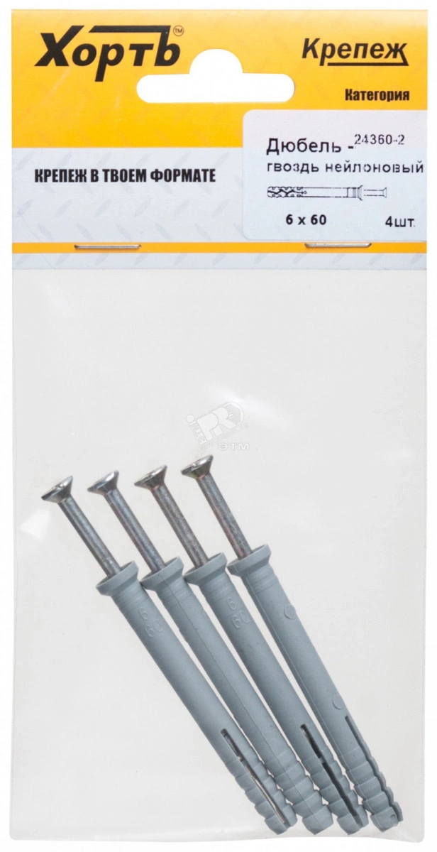 Дюбель-гвоздь 6х60 потайной бортик, нейлон (4шт)