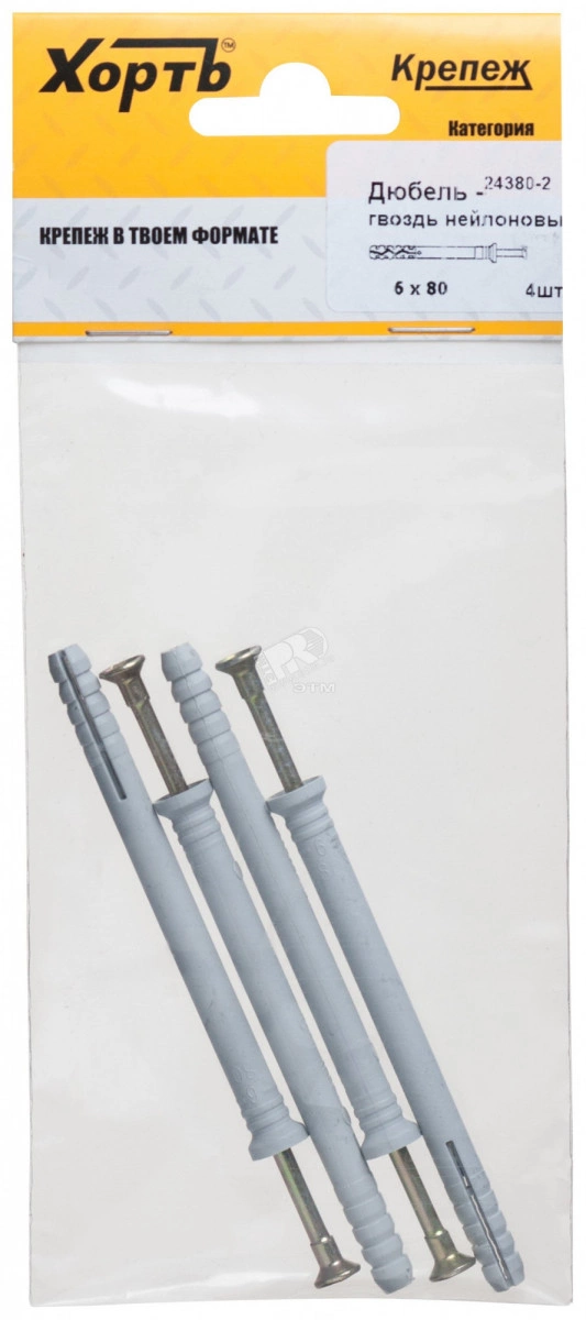 Дюбель-гвоздь 6х80 потайной бортик, нейлон (4шт)