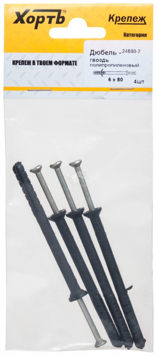 Дюбель-гвоздь 6х80 потайной бортик, полипропилен (4шт)