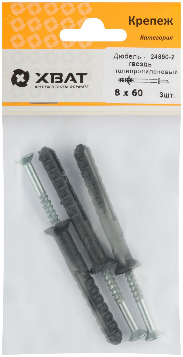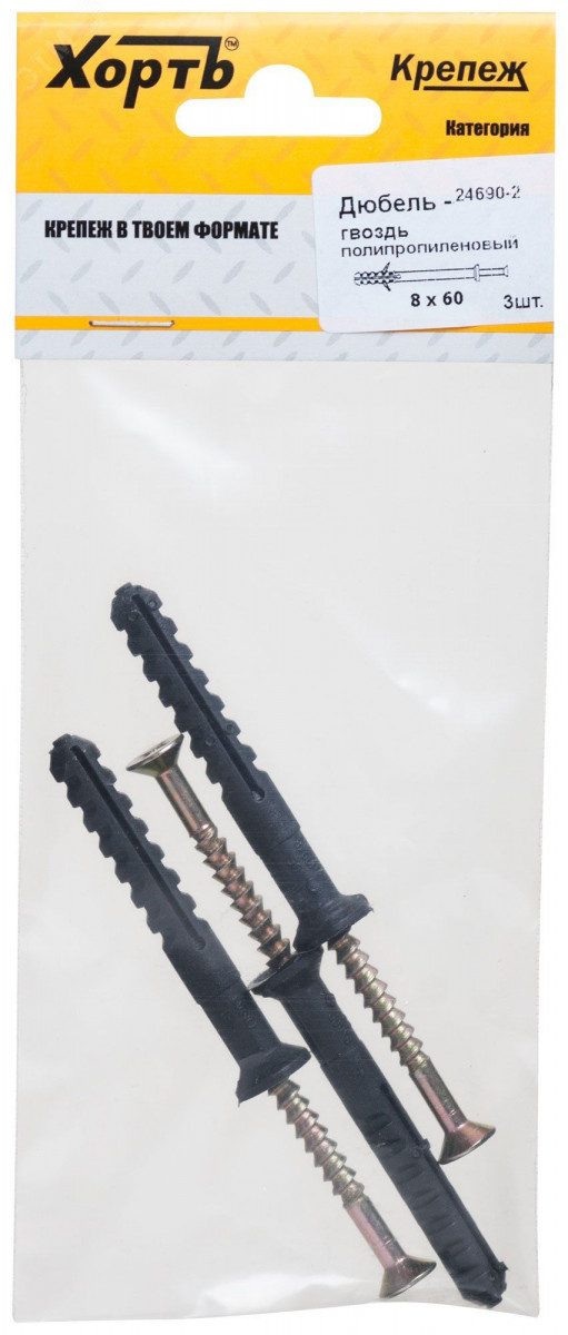Дюбель-гвоздь 8х60 потайной бортик, полипропилен (3шт)
