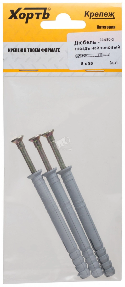 Дюбель-гвоздь 8х80 потайной бортик, нейлон (3шт)
