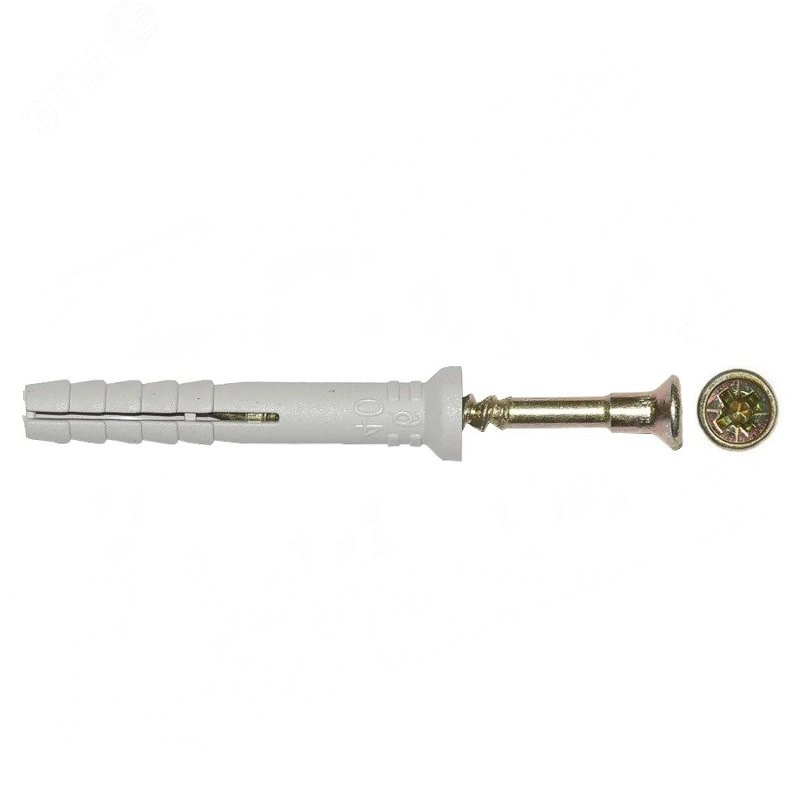 Дюбель-гвоздь предназначен для быстрого монтажа. Главное преимущество такого крепления заключается в установке ударным способом (молотком), что значительно экономит время, обеспечивая быстрый серийный монтаж. Бортик на шляпке гвоздя предохраняет шлицы от сбивания при забивании, усиление гвоздя под шляпкой плотно фиксирует гвоздь в дюбеле, предохраняя его от излома. Дюбель-гвоздь может быть вмонтирован в бетон, пустотелый и полнотелый кирпич, керамзитобетон, газобетон.