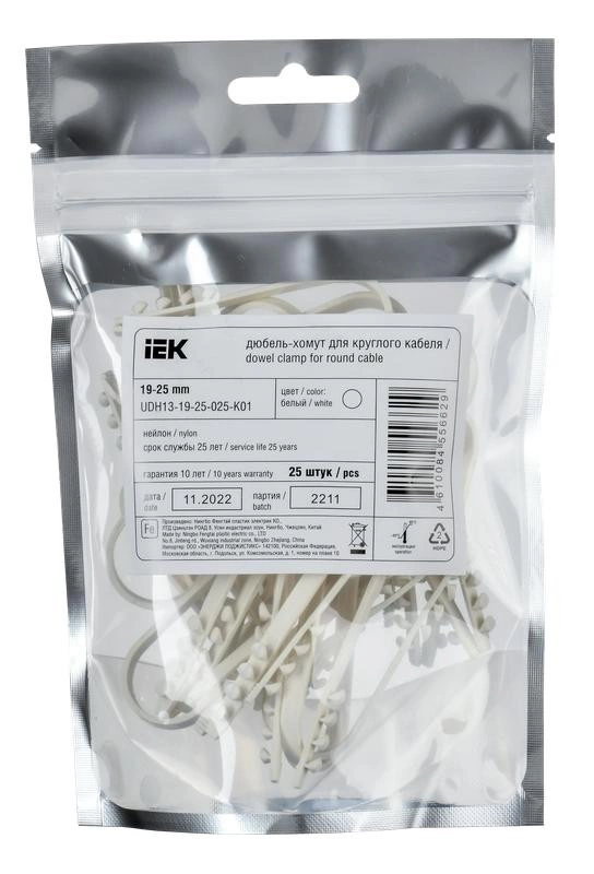 Полное описание: Дюбель-хомут 19-25мм для круглого кабеля нейлон бел. (уп.25шт) IEK UDH13-19-25-025-K01